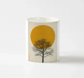 Immergetevi nella serena bellezza di "Golden Horizon Tree", una stampa digitale minimalista che cattura una profonda tranquillità. Questa straordinaria opera presenta una maestosa sfera giallo-dorata, che ricorda un sole o una luna potenti, e che fa da sfondo caldo a una tela bianco sporco, leggermente consumata.