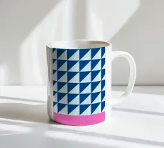 Questa immagine presenta un motivo geometrico composto da forme triangolari alternate, ciascuna riempita da linee orizzontali disegnate a mano.I triangoli sono disposti in un formato a griglia, creando un design ripetitivo e strutturato.La tavolozza dei colori offre uno sfondo morbido e viola con linee blu scuro all'interno dei triangoli.L'effetto disegnato a mano aggiunge una sensazione dinamica e strutturata al motivo altrimenti nitido e angolare.Questo design moderno è ideale per progetti grafici, tessuti o sfondi digitali e offre una sensazione dinamica e strutturata.