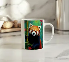 Un simpatico panda rosso, giocosamente appeso a un albero nella giungla. Questo disegno irradia gioia di vivere e vicinanza alla natura - perfetto per gli amanti degli animali e per gli appassionati di illustrazioni allegre.Questo disegno trasmette gioia di vivere, giocosità e la bellezza della natura.