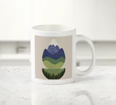 Un'illustrazione splendidamente stratificata e minimalista che presenta una maestosa catena montuosa innevata e i pendii inferiori ondulati, racchiusi in una forma astratta a goccia. Il disegno utilizza colori naturali e tenui e sottolinea i contorni sereni del paesaggio selvaggio. Minimalista, Astratto, Geometrico, Arte stratificata, Line Art, Tavolozza tenue, Contemporaneo, Montagna, Vetta, Picco, Alpi, Natura, Paesaggio, Selvaggio, All'aperto, Escursione, Neve, Foresta, Colline, Sereno, Calmo, Tranquillo, Toni terrosi, Contorni, Arte murale moderna, Poster di viaggio.
