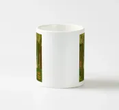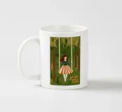Una ragazza dai lunghi capelli castani è seduta su un'altalena in mezzo alla foresta. Indossa un top a righe bianche e nere e una gonna a righe bianche e rosse. L'altalena è appesa a due corde tra alti alberi con un fitto fogliame verde. Il pavimento della foresta è ricoperto di foglie e piante nei caldi toni autunnali - arancione, marrone e verde. L'illustrazione è giocosa e nostalgica, con uno stile pittorico che evoca tranquillità e ricordi d'infanzia. Un momento pieno di magia e di vicinanza alla natura.