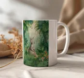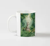 Una commovente stampa ad acquerello di una madre canguro che coccola il suo piccolo in una lussureggiante giungla tropicale. Perfetta per le camerette, le stanze dei bambini o per chiunque ami la fauna selvatica e le vibrazioni della foresta.