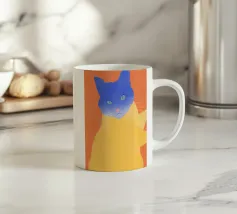 Una vivace illustrazione di gatti ispirata alla pop-art, con un sorprendente felino blu dalla finitura astratta e strutturata. Su uno sfondo rosa, con una vivace stampa di labbra, questo disegno emana fascino e un'estetica moderna. Perfetto per gli amanti dei gatti e per chi apprezza l'arte colorata e accattivante!