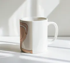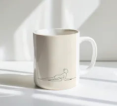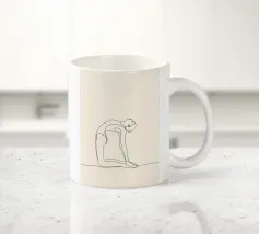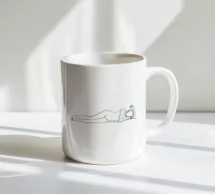 Illustrazione minimalista al tratto di una figura femminile reclinata, che cattura un senso di rilassamento e agio. I cerchi morbidi e dai toni terrosi aggiungono calore ed equilibrio alla composizione. Perfetto per chi ama un arredamento semplice, moderno ed elegante.