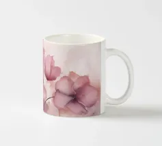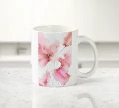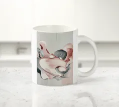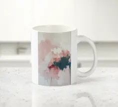 Un delicato pezzo floreale astratto con una forma centrale simile a un fiore in bianco e rosa tenue, con linee più scure simili a inchiostro che si irradiano verso l'esterno, come se svelassero l'anima di un fiore su uno sfondo tenue. Stile Melissa Herrington.