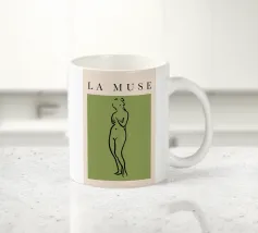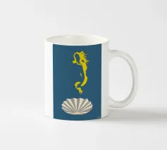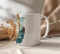 Afrodite si erge con grazia su una conchiglia aperta, circondata dalle onde dell'oceano. I lunghi capelli biondi le incorniciano il corpo. La scena ricorda la sua nascita dal mare e simboleggia l'amore e la bellezza.
