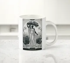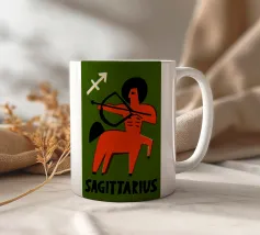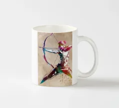 Apollo è in piedi, con un arco in una mano e una freccia nell'altra. La sua postura è fiera e tranquilla. La combinazione di colori nei toni del rosa e del marrone conferisce all'immagine calore e classicità. Le scritte verticali sottolineano la sua autorità.