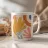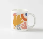 Un'opera d'arte botanica astratta dominata da un grande fiore stilizzato in una tonalità giallo oro. Le forme morbide e i colori caldi creano un'opera al tempo stesso audace e delicata, piena di solare ottimismo.