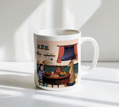 Un cavaliere intraprende un viaggio in cima a un maestoso cervo attraverso un paesaggio innevato. Le montagne lontane scintillano sotto un fresco cielo crepuscolare, evocando avventura e tranquillità.