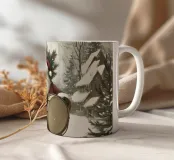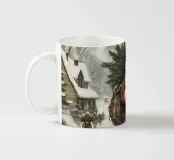 Un nostalgico motivo natalizio: Babbo Natale marcia allegramente in un villaggio innevato con un tamburo in mano e un abete sulla schiena. I colori caldi e festosi e l'idillio invernale rendono questo disegno perfetto per decorazioni, regali e accessori natalizi. Ideale per murales, tazze, cuscini o maglioni: un'immagine che porterà l'allegria del Natale e un'atmosfera festosa in ogni casa.