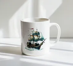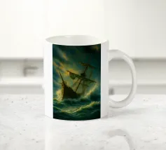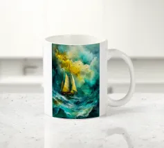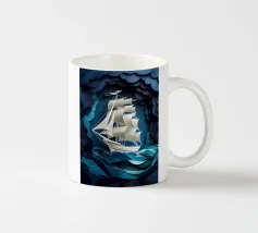 Un veliero storico fende con forza le onde blu profondo sotto un cielo vivido. La luce del sole al tramonto dona alla vela riflessi caldi e fa apparire l'imbarcazione maestosa. Questo poster cattura in modo impressionante il fascino della navigazione a vela e la libertà del mare aperto - un punto di forza per gli interni marittimi.