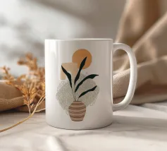 "An abstract botanical art wallpaper features stylized representations of plants and foliage using artistic shapes, flowing lines, and modern color palettes. Rather than realistic depictions, the desig"