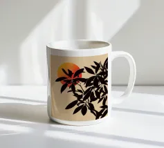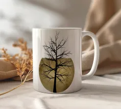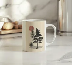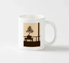 Illustrazione di un albero bonsai con un sole giallo