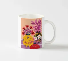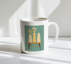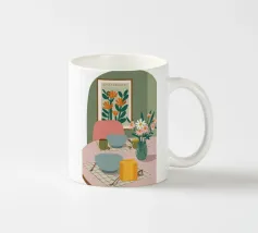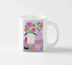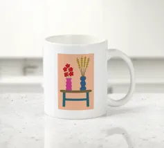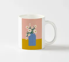 Un'affascinante natura morta di un semplice bouquet di fiori bianchi e arancioni in un vaso, seduto su un tavolo con una tovaglia a scacchi rossi e bianchi. La scena ha un'atmosfera calda, rustica e leggermente nostalgica.