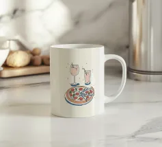 L'abbinamento perfetto per iniziare la giornata o per godersi un momento di relax! Questo disegno raffigura una fragrante tazza di caffè e un delizioso trancio di pizza, una combinazione che molti amano.