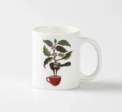 Una calda miscela di moka e verde festivo in una tavolozza terrosa; foglie verdi e bacche rosse creano un motivo festivo artigianale per capi stagionali.