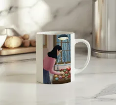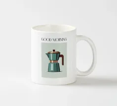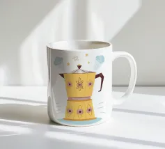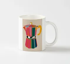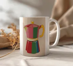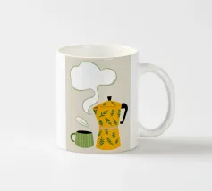 La classica caffettiera Moka è elegantemente presentata come un vaso che contiene una singola e delicata margherita bianca, unendo i rituali del caffè e la bellezza della natura in una natura morta minimalista.