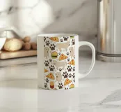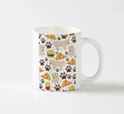 Cane con motivo fast food e impronte di zampe