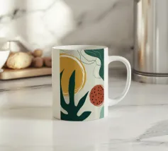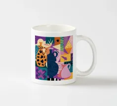 Un'esplosione caotica e cromatica di foglie colorate e sovrapposte crea un modello di giungla vibrante, energico e coinvolgente, pieno di vita e movimento.