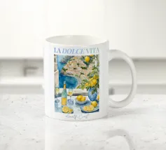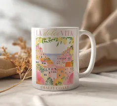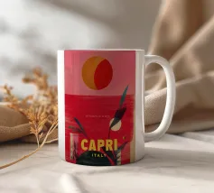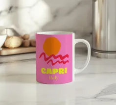 Celebrate la dolce vita con questa vivace stampa d'arte a collage ispirata a Capri, in Italia. Un incantevole dipinto di un villaggio di mare è incorniciato da allegri motivi di agrumi, uno scooter retrò e un cactus con gli occhiali da sole, il tutto stratificato con audaci forme astratte in arancione, magenta e verde acqua. È il pezzo perfetto per tutti coloro che desiderano le vibrazioni mediterranee, l'estetica retrò e l'eccentricità dell'arredamento ispirato ai viaggi.