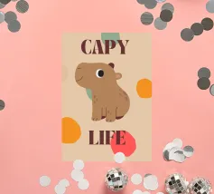 Preparatevi a sorridere con "Capy Life", una stampa allegra e divertente con un capibara felice e spensierato che vive la sua vita migliore! Con un grande sorriso e un atteggiamento rilassato, questo capibara vuole abbracciare la gioia del momento e ricordarci di fare lo stesso. Luminosa, giocosa e piena di energia, questa stampa porterà un'esplosione di felicità in ogni spazio. È il promemoria perfetto per rallentare, godersi la vita e celebrare i piaceri semplici!