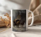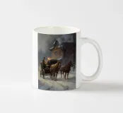 Questo suggestivo dipinto mostra una carrozza trainata da cavalli che percorre una strada innevata, mentre la calda luce delle lanterne illumina la sera. Il cocchiere, in spessi abiti invernali, guida i cavalli con calma nella notte gelida. Una scena piena di nostalgia, romanticismo e tranquillità invernale, che trasporta lo spettatore in un'epoca passata ricca di fascino e contemplazione.