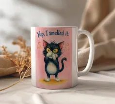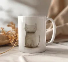 Illustrazione di un gatto disegnata a mano con inchiostro e acquerelli, digitalizzata per la stampa con possibilità di personalizzazione. È possibile modificare e aggiungere testo (ad esempio il proprio nome) e cambiare lo sfondo per alcuni prodotti. Provatelo! Divertitevi!
