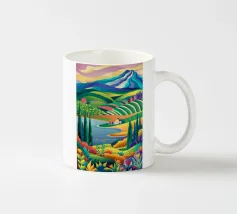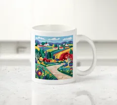 Un paesaggio panoramico delle dolci colline toscane, con strade tortuose, cipressi e campi resi con una tavolozza di colori ricchi e caldi che cattura la bellezza della campagna italiana.