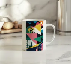 Un'energica opera d'arte astratta composta da frammenti di verde, giallo, rosa e nero che si scontrano tra loro. La composizione dinamica crea un senso di caos controllato e di energia moderna e tagliente.