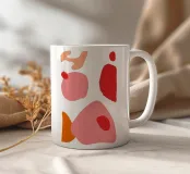 Una composizione astratta minimalista e giocosa di forme semplici e ritagliate in una tavolozza di rosa, rosso e crema. L'opera d'arte è leggera, allegra e ha un'atmosfera moderna e spontanea.