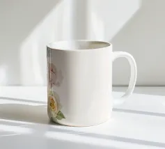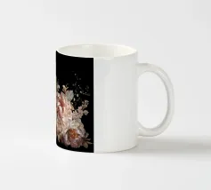 Una splendida composizione floreale mette in mostra delicate rose e foglie color pastello, disposte artisticamente su uno sfondo morbido e neutro. La composizione mette in risalto l'eleganza e la maestria.