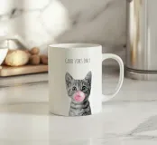 Questo gatto ha semplicemente tutto: fresco, elegante e con un tocco di coolness! Con la sua bolla di sapone rosa e il suo sguardo innocente, diffonde puro buonumore ed è il motivo perfetto per chiunque ami l'energia positiva e l'umorismo. Il design moderno e minimalista combina una sottile illustrazione in bianco e nero con un fresco accento rosa; semplice ma espressivo. Un must per i fan dei gatti, per gli amanti del design e per chiunque voglia farsi notare: casual, moderno e con un pizzico di umorismo.