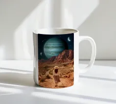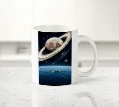Una visione surreale e mozzafiato in cui l'immaginazione sfida la gravità. Running Beneath Saturn raffigura una figura solitaria che attraversa un paesaggio ghiacciato simile a uno specchio, che riflette perfettamente l'enorme pianeta ad anelli sospeso in un cielo pieno di stelle. Le montagne innevate si estendono all'orizzonte, accentuando il senso di scala, silenzio e meraviglia cosmica. Questa onirica opera d'arte spaziale fonde surrealismo, estetica fantascientifica e narrazione emotiva, simboleggiando libertà, curiosità ed esplorazione. Ideale per gli appassionati di arte cosmica, scene surreali minimaliste e illustrazione digitale moderna, questo disegno aggiunge profondità.