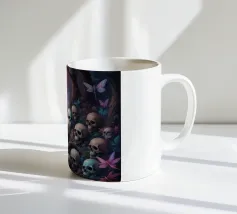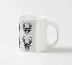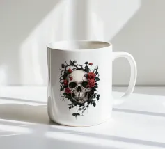 Diversi teschi sono appesi in una ragnatela di ragnatele e rami spinosi. La scena è in bianco e nero e appare oscura e misteriosa per la ricchezza dei dettagli. Un motivo a metà tra l'incubo e l'opera d'arte.