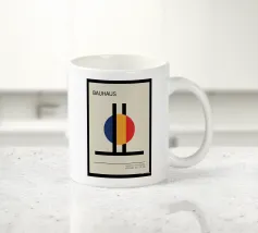 Questo poster astratto, ispirato al movimento Bauhaus, presenta una composizione dinamica di forme e archi curvi e stratificati, in colori sorprendenti come il rosso, il nero e vari blu. Il disegno include il testo verticale "BAUHAUS" sulla sinistra. Il gioco di forme sovrapposte crea profondità e interesse visivo, incarnando i principi Bauhaus di forma e colore. Prodotto come arte digitale di alta qualità a 7000x5000 pixel e 300 dpi, questo poster garantisce linee nitide e colori vivaci per un'opera d'arte di qualità.