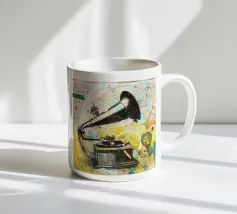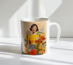 Una nostalgica stampa d'arte a collage che unisce fascino vintage e romanticismo. Un grammofono ornato esplode di fiori vivaci e dischi in vinile, mentre una coppia che balla cattura la magia della musica senza tempo. Un'opera d'arte da parete perfetta per gli amanti della musica, per gli appassionati di arredamento retrò o per chiunque sia attratto dalla narrazione di storie sentimentali attraverso il design.