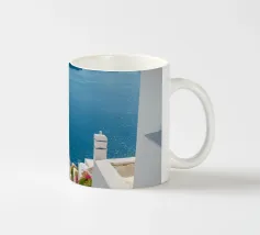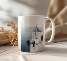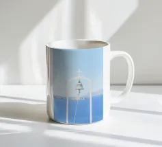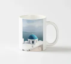 Questo motivo invita a sognare con la sua semplice eleganza e le ampie tonalità di blu. La composizione minimalista mostra la calma del Mar Egeo e la suggestiva architettura degli edifici costieri, che ricordano le località di vacanza del Mediterraneo. Ideale per chi ama la sensazione di spazio e libertà e cerca un arredamento moderno e rilassante. Che si tratti di un murale, di una tazza, di un cuscino o di una cover per il cellulare, questo motivo porta la bellezza del mare e la chiarezza dell'architettura in ogni stanza e crea un'atmosfera rilassante.