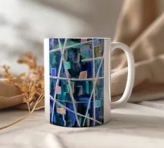 Un quadro dalle tonalità di blu finemente bilanciate con un tocco di verde, ideale per soggiorni, camere da letto o uffici.