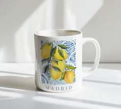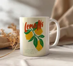 Questo colorato design retrò combina limoni e forme vivaci in blu e giallo per creare un'opera d'arte fresca e moderna. Ispirato alla leggerezza estiva e al fascino mediterraneo, porta freschezza e buonumore in ogni casa. Perfetto come murale, tazza o accessorio per la casa - ideale per gli amanti della grafica moderna, dei motivi di frutta e delle decorazioni estive.