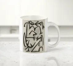 Forme e linee astratte in nero si stagliano su uno sfondo beige chiaro, creando una composizione minimalista. Gli elementi contrastanti suggeriscono un senso di equilibrio e movimento.