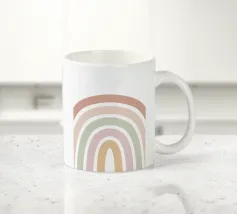 Una rilassante illustrazione grafica astratta a doppio arcobaleno, caratterizzata da linee e forme geometriche bianche in tonalità verde salvia e soffice pesca. Questo disegno sereno e minimale evoca l'inizio della primavera, la tranquillità e l'ottimismo, perfetto per aggiungere un fascino di ispirazione rétro al vostro spazio. Ideale per ravvivare una stanza tranquilla, dona armonia ad opere d'arte da parete, cuscini e accessori, offrendo un'estetica pacifica per una vita moderna.