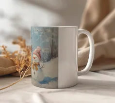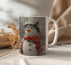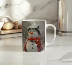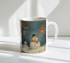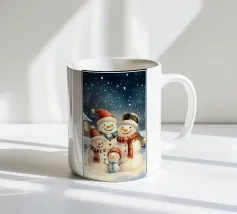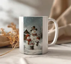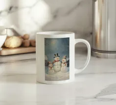 I due pupazzi di neve sono mano nella mano e mostrano le loro espressioni amichevoli. Ognuno di loro è adornato con un cappello e una sciarpa, circondato da fiocchi di neve che cadono sotto il cielo notturno invernale.