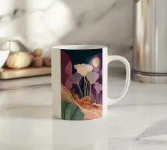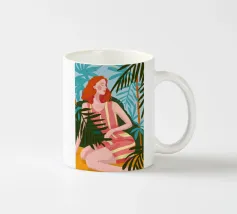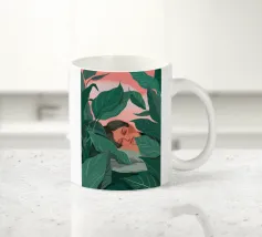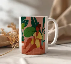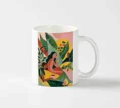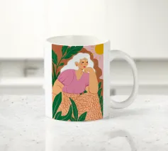 Un bellissimo ritratto stilizzato di due volti di donna di profilo, leggermente sovrapposti. I colori caldi e tenui e lo sfondo a righe creano un'opera d'arte delicata e intima che parla di legami e identità.