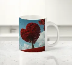 Un escavatore giallo è posizionato accanto a una benna rossa piena di oggetti a forma di cuore, che simboleggiano l'amore. L'ambientazione è caratterizzata da un terreno soffice, che aggiunge un tocco unico al tema di San Valentino.