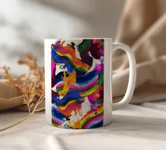 Colori vivaci si fondono in forme dinamiche, creando una composizione gioiosa ed energica. L'assortimento di tonalità offre un'esperienza visiva sorprendente e piena di movimento.