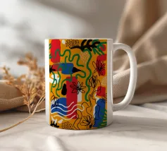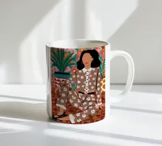 Un ritratto astratto moderno e minimalista creato con linee fluide e continue, che raffigura un volto dall'espressione dolce in una tavolozza di colori terrosi.