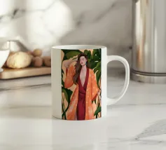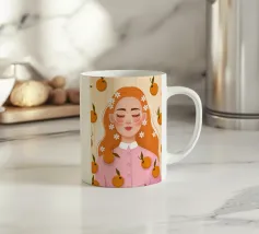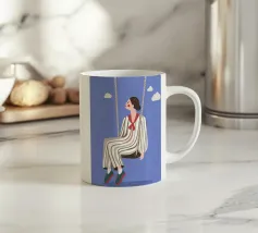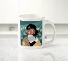 Il dipinto raffigura una persona con capelli corti e rosa su uno sfondo di fiori di ciliegio. La persona indossa una camicia verde e la composizione complessiva emana un senso di crescita e di sicurezza.