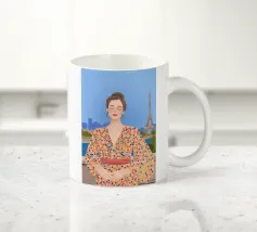 Il dipinto raffigura una persona con capelli corti e rosa su uno sfondo di fiori di ciliegio. La persona indossa una camicia verde e la composizione complessiva emana un senso di crescita e di sicurezza.