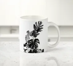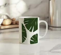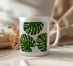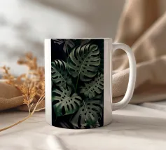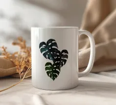 Questo elegante disegno di foglie di monstera porta la natura tropicale in casa vostra. Le foglie verde intenso della monstera aggiungono un'atmosfera fresca ed esotica a qualsiasi ambiente. Perfetto come murale, su tazze o cuscini, il motivo minimalista si abbina perfettamente agli stili di interni moderni, scandinavi o di ispirazione boho. È il design ideale per tutti gli amanti delle piante e fornisce un accento naturale e rilassante a qualsiasi ambiente.