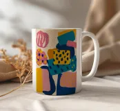 Una composizione astratta audace ed energica in stile cubista, caratterizzata da una festa di forme geometriche, motivi e colori vivaci. L'opera è un'esplorazione dinamica e giocosa della forma e del colore.